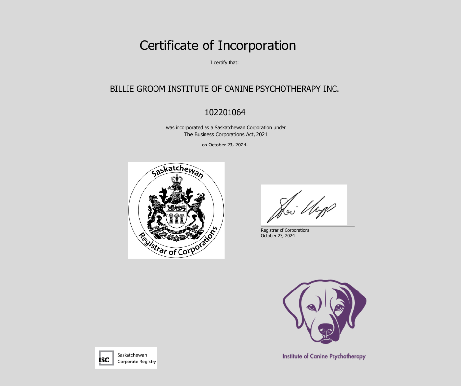 *Signature Diploma Program - Certified Canine Psychotherapist.